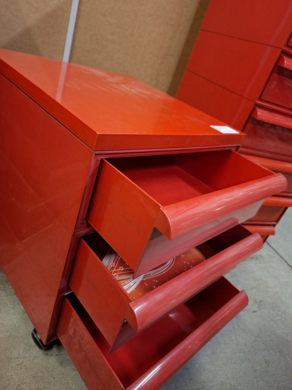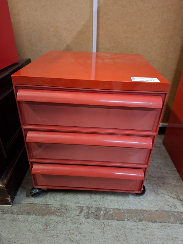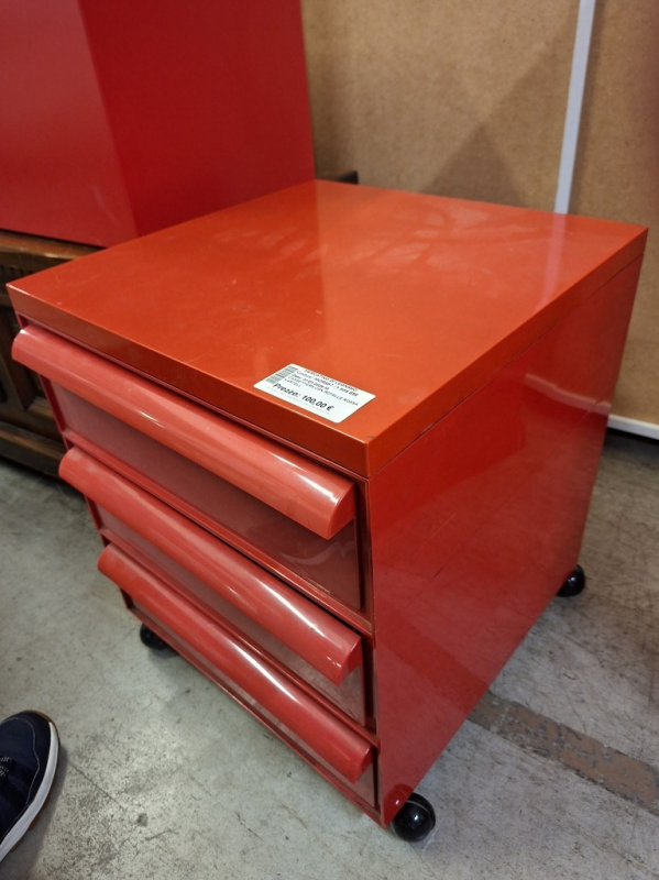 CASSETTIERA CON ROTELLE ROSSA